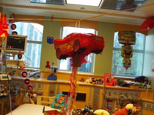 The Head of the Cardiovascular-Thoracic Surgery Department, Dr. Backer and his family personally bought Qadar the Caterpillar Birthday Cake that’s also in the picture. Many of his surgeons, doctors’, nurses, and other support staff came to his room to offer their birthday greetings and give him gifts. The 5th Floor Family Life Center staff made the green poster board with the lion on it. They walked around and so many of the medical and support staff on the 5th Floor signed it and presented to him for his birthday. This little fighter attracts love and attention wherever he goes.